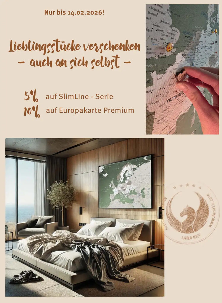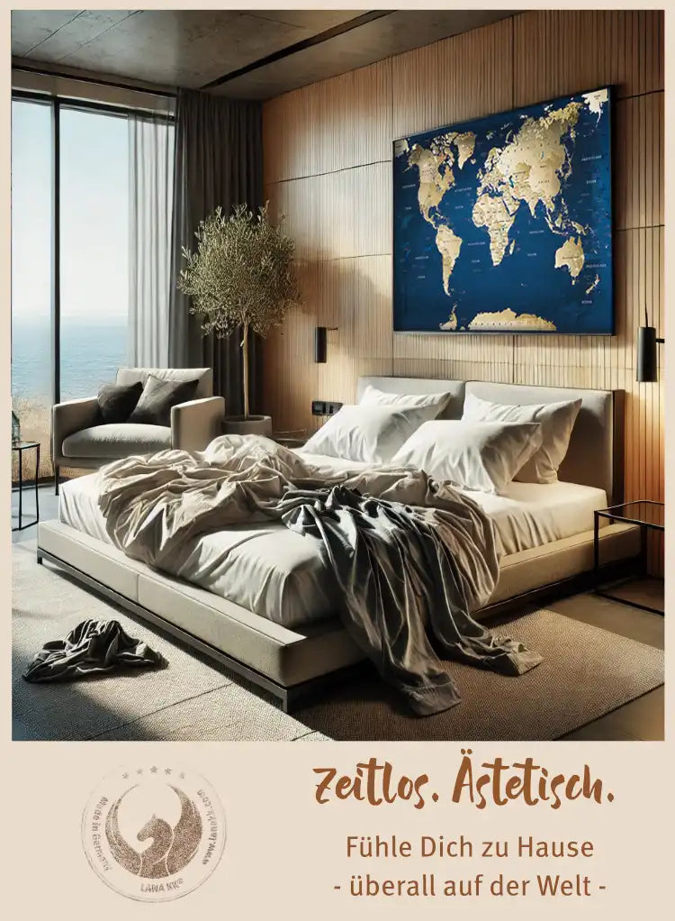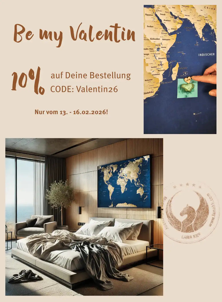 Tauche ein in die faszinierende Welt unserer Erde – oder noch weiter hinaus ins Universum. Verfolge Deine Reisen, stecke auch andere mit Deiner Neugier an. Verleih Deiner Weltkarte eine persönliche Note – mit Deinem Namen oder eurer ganzen Familie. Auch ein liebevoller Spruch macht die Karte zu einem ganz besonderen Geschenk.
