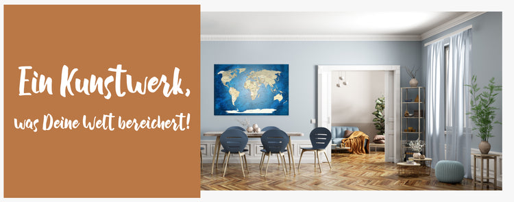 Tauche ein in die faszinierende Welt unserer Erde – oder noch weiter hinaus ins Universum. Verfolge Deine Reisen, stecke auch andere mit Deiner Neugier an. Verleih Deiner Weltkarte eine persönliche Note – mit Deinem Namen oder eurer ganzen Familie. Auch ein liebevoller Spruch macht die Karte zu einem ganz besonderen Geschenk.