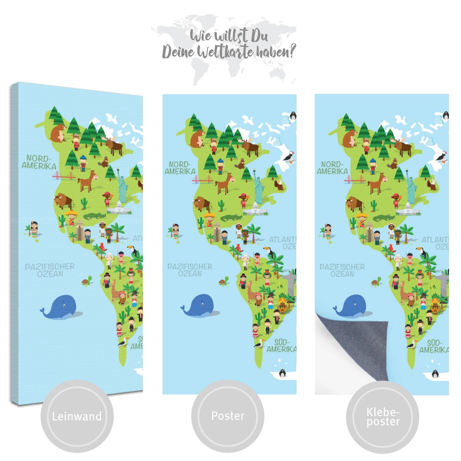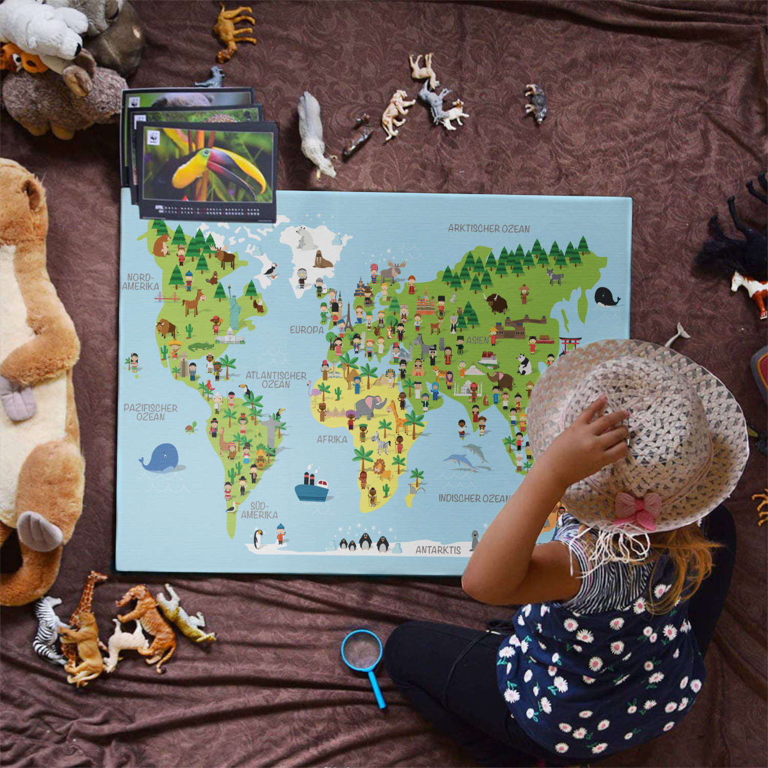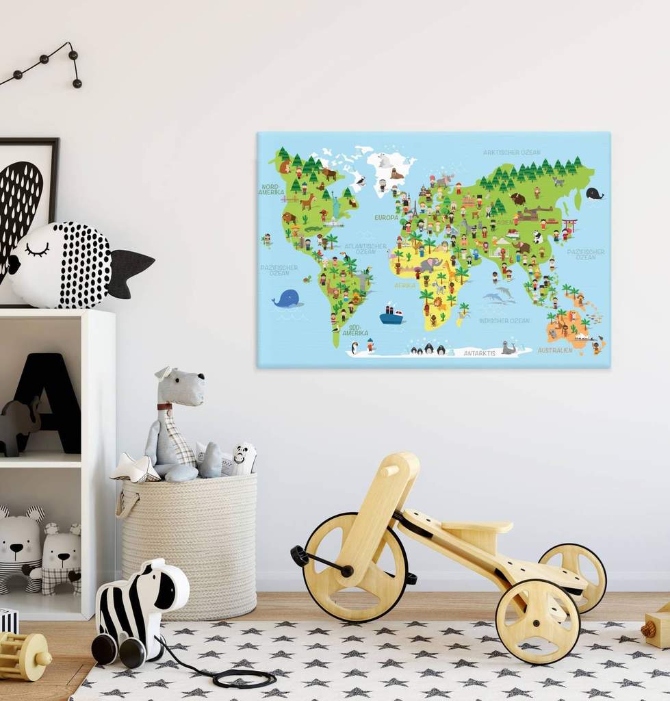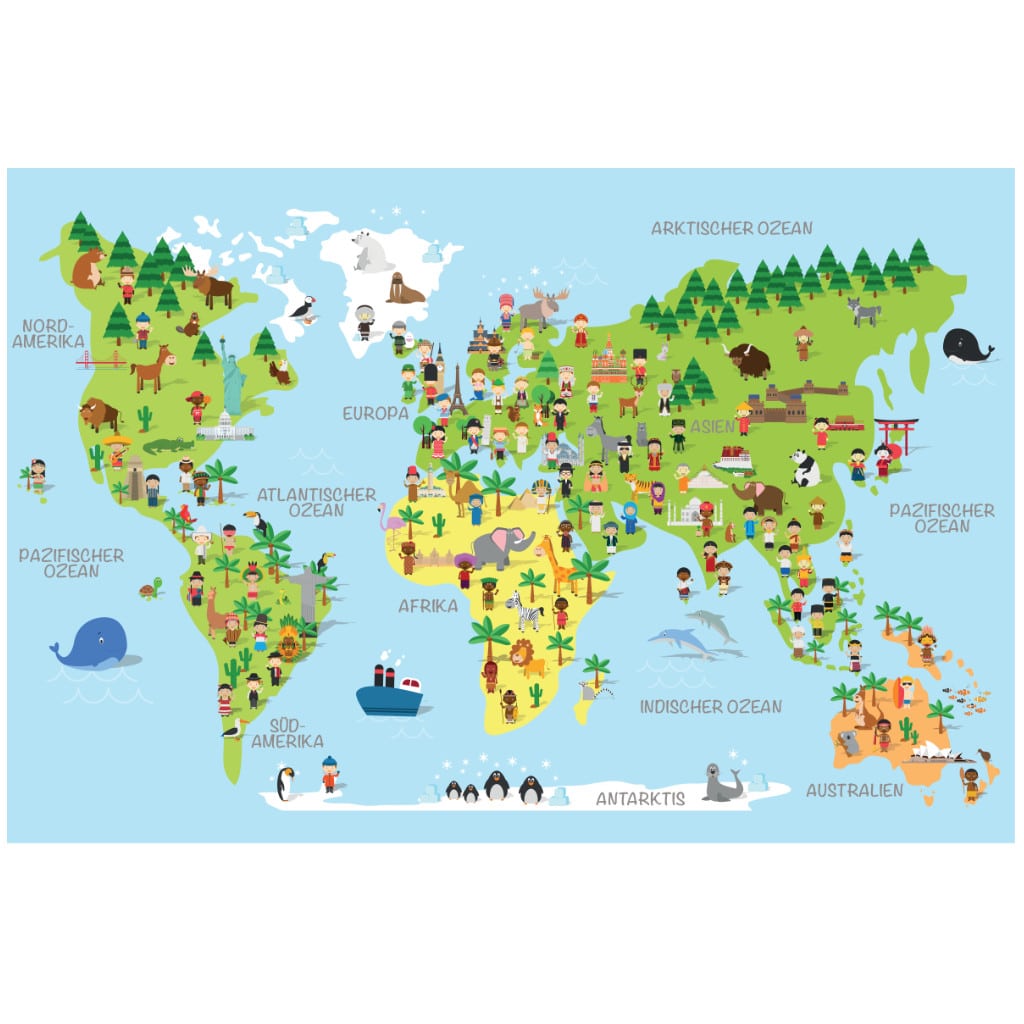 Zeige Deinem Kind die Welt und geht gemeinsam auf Entdeckungstour. Erforscht zusammen die Lebensräume vieler Tiere, lernt unsere sieben Kontinente kennen, bestaunt wieviel Wasser es auf unserer Erde gibt uvm. Die Kinderweltkarte ist liebevoll, kindgerecht gezeichnet und enthält viele Details unserer schönen Erde. Gemacht für junge Entdecker und Forscher 🌎 😃