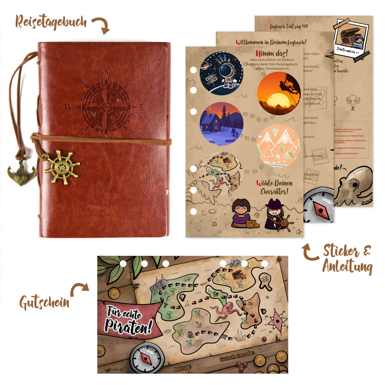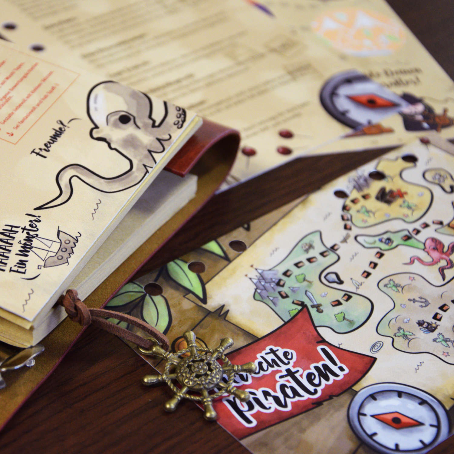 klassischer Look mit Windrose als Prägung und Retro-Anhängern