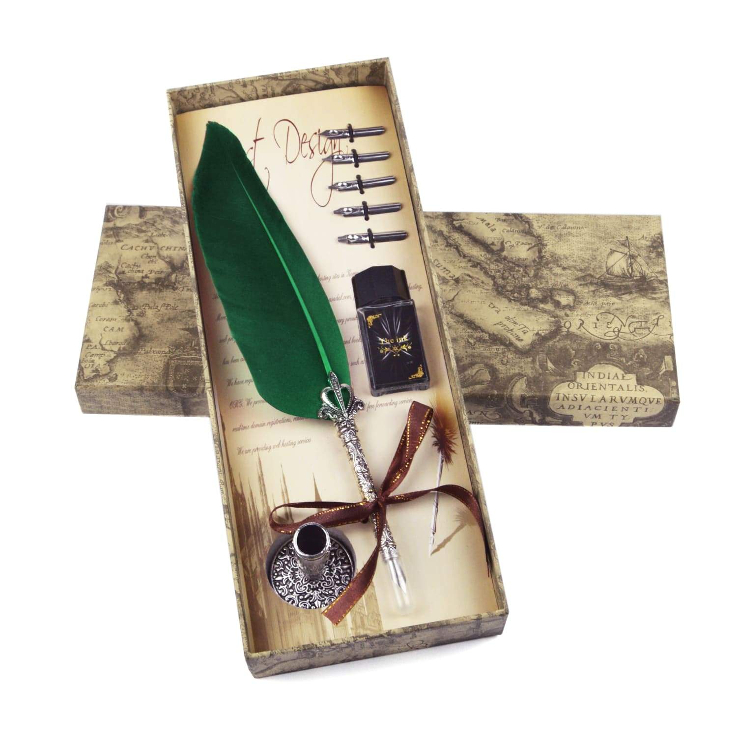 Schicke Schreibfeder oder auch Zeichenfeder zum schreiben oder zeichnen mittels meist Tinte auf Papier, Pappe, Pergament, Stoff oder andere Beschreibstoffe. Die Feder wird zur besseren Handhabung von einem Federhalter gehalten.