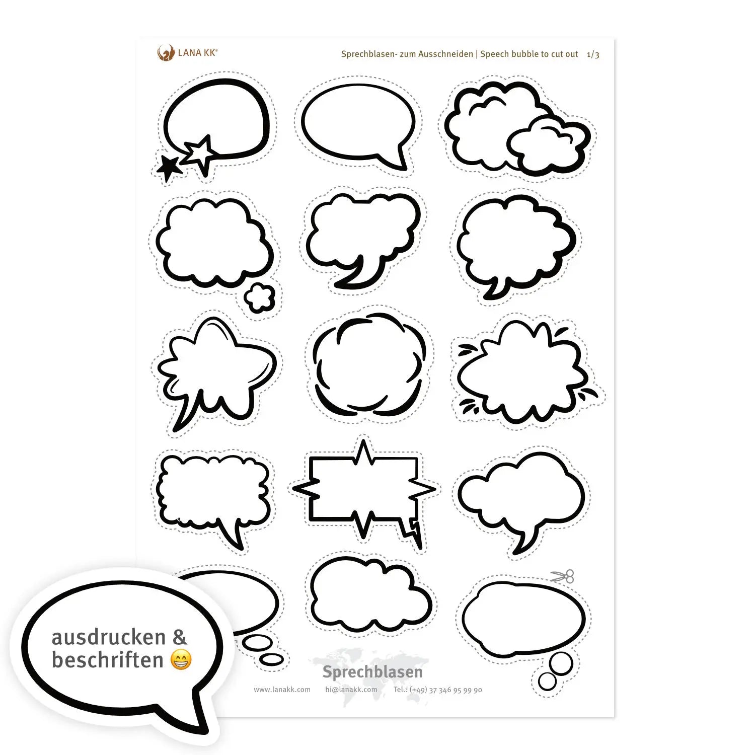 Tipp: Drucke deine Sprechblasen auf Buntpapier aus, für noch mehr Farbvielfalt auf deiner Karte. 🌈