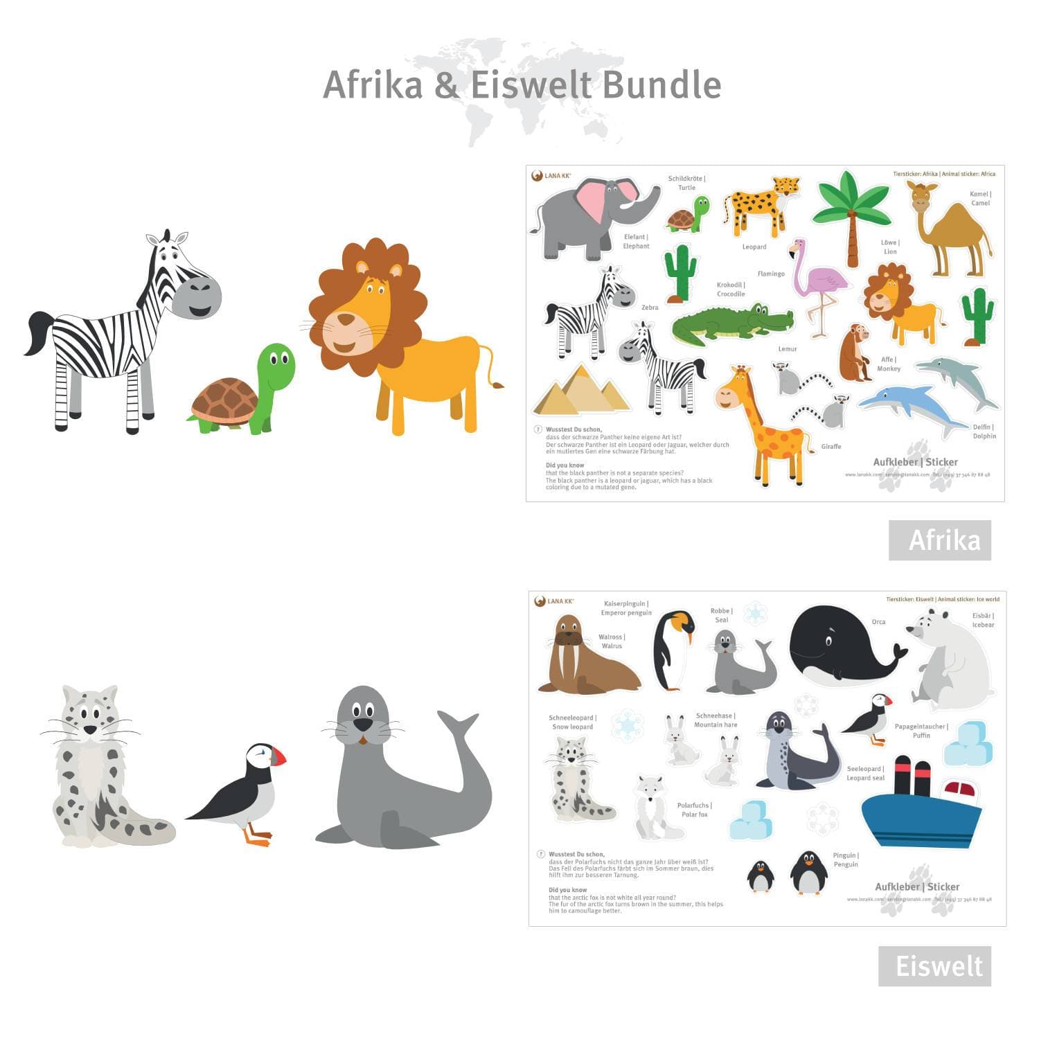 ✔ 2er Bundle (Südamerika & Europa oder Afrika & Eiswelt): 2 Bögen im Format A4