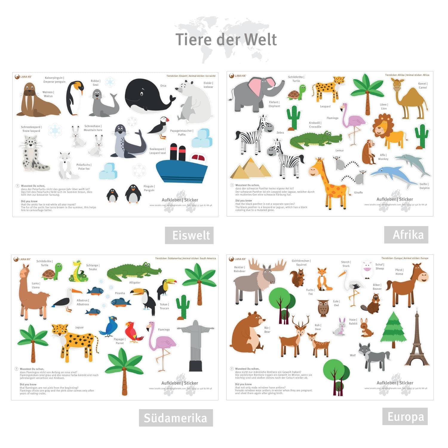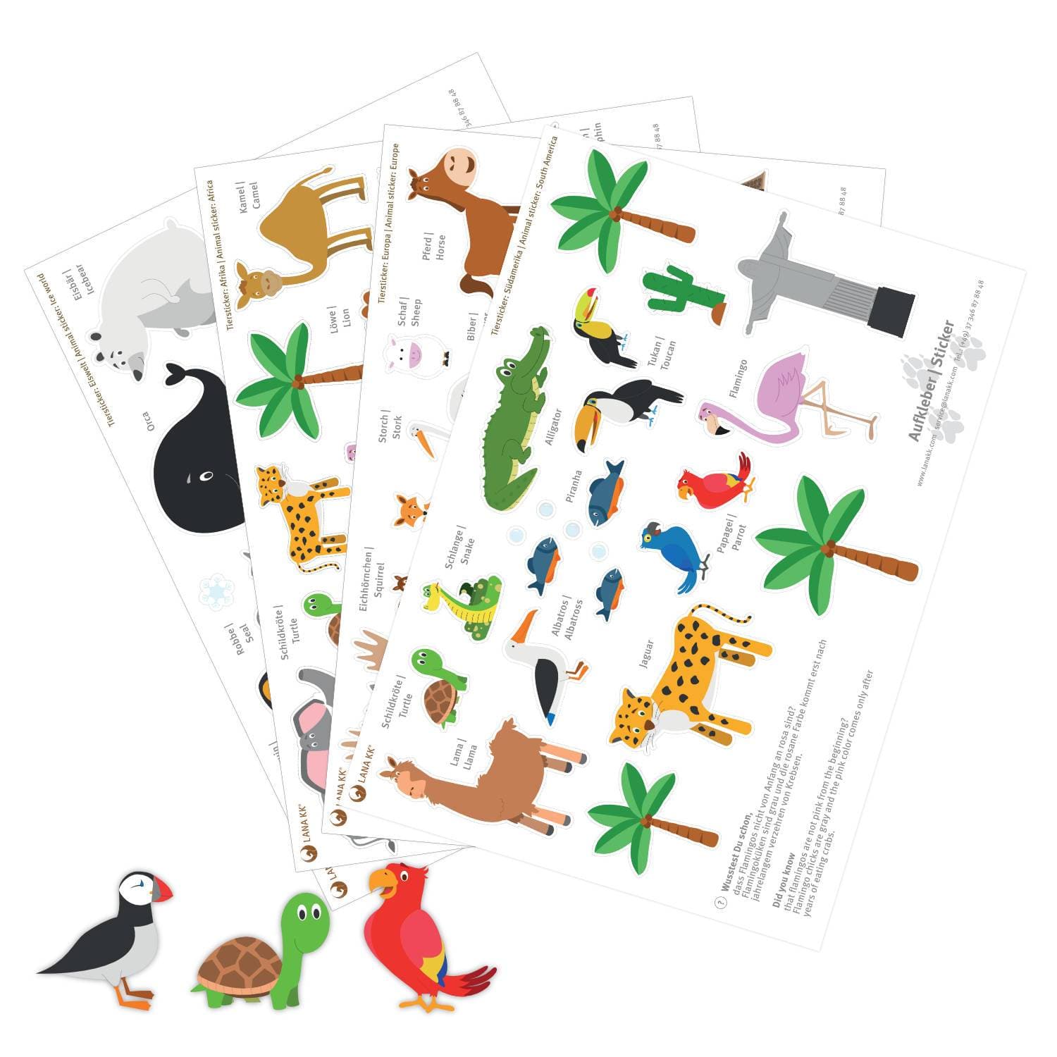 ✔ Alle Tiere (Eiswelt, Südamerika, Europa, Afrika): 4 Bögen im Format A4