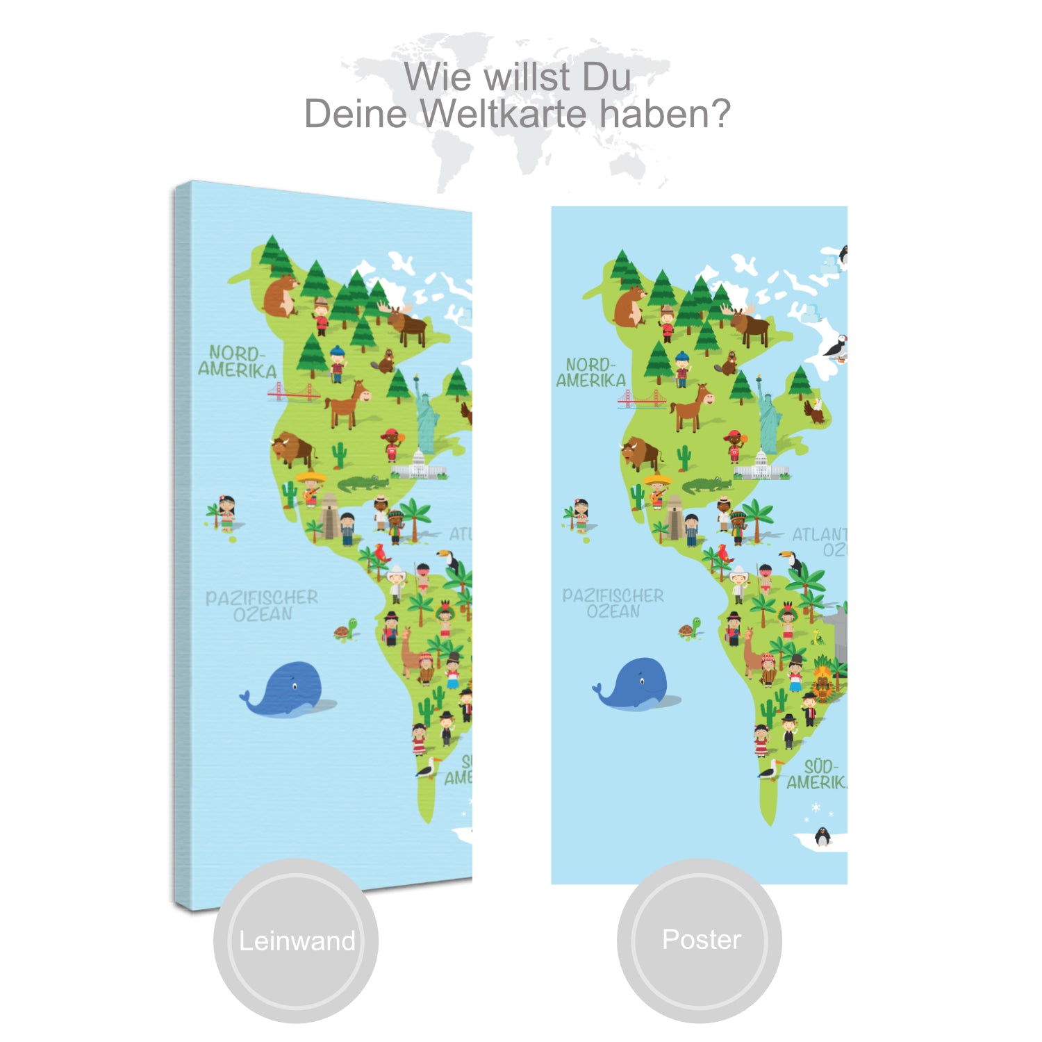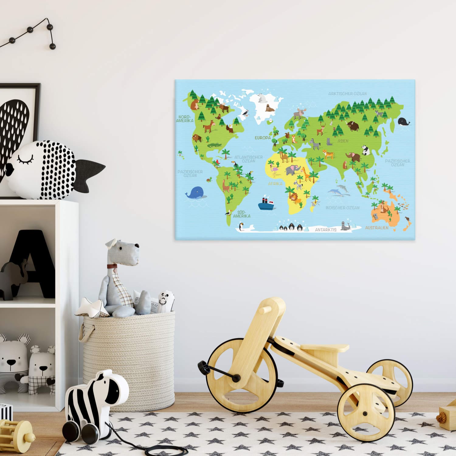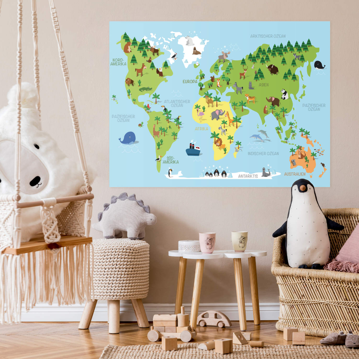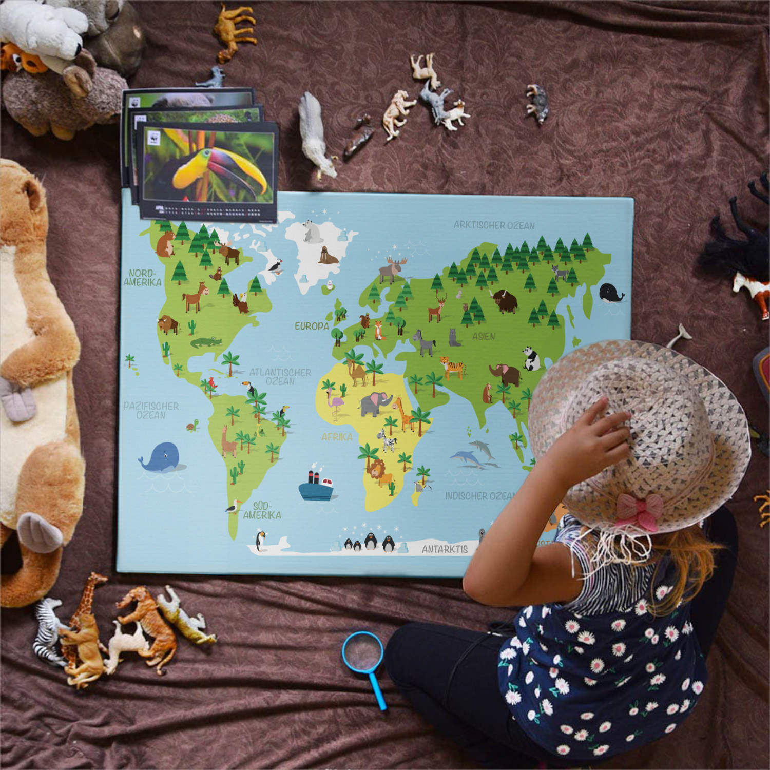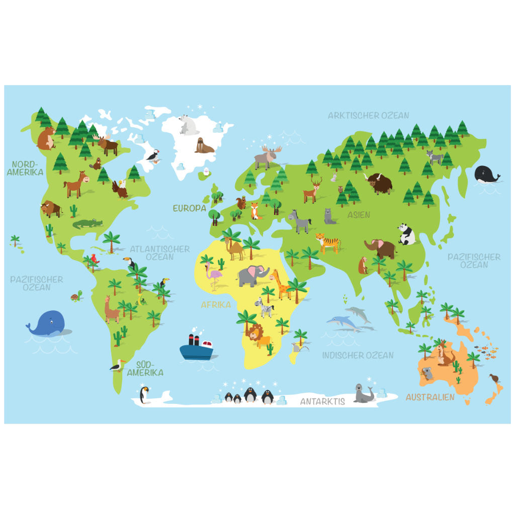 Weltkarte Kinder Bunt - Tiere, Deutsch
