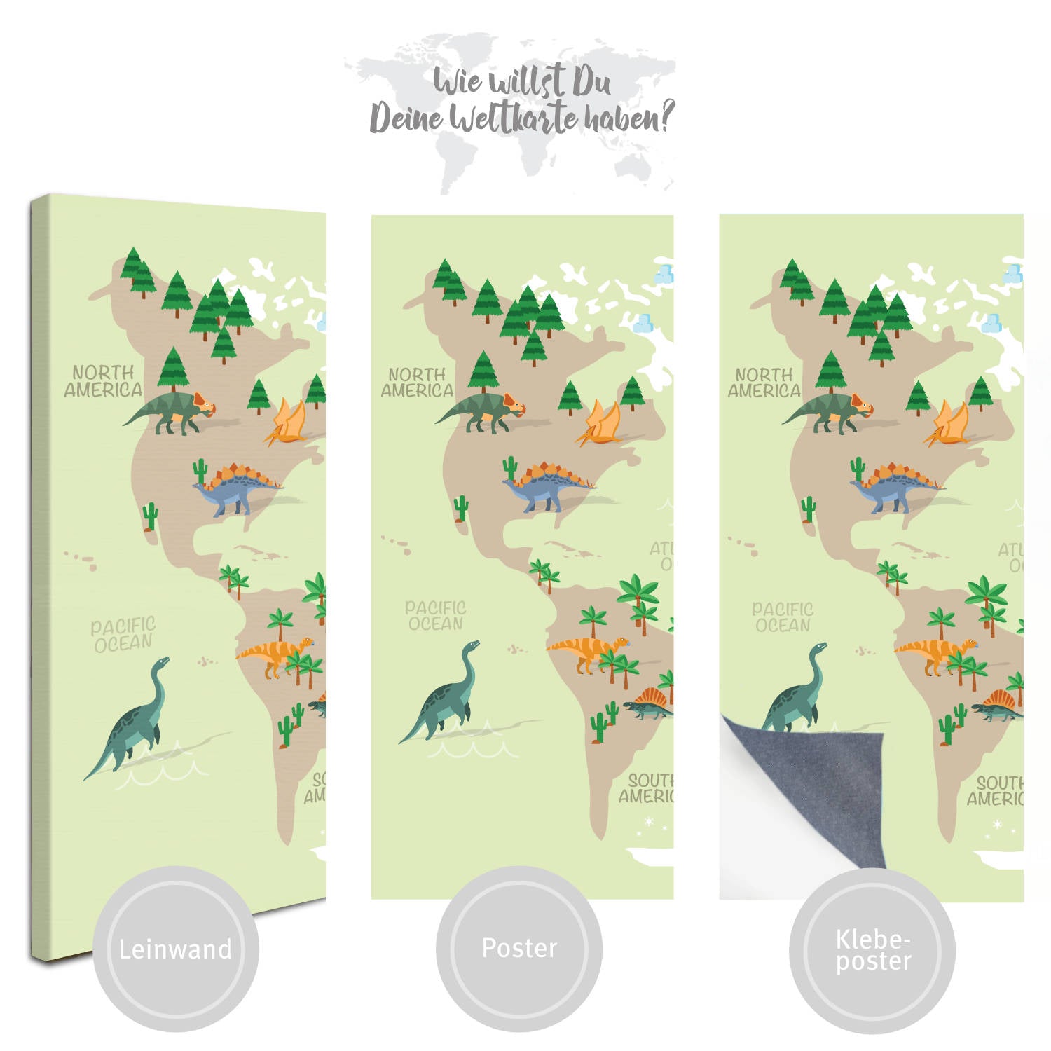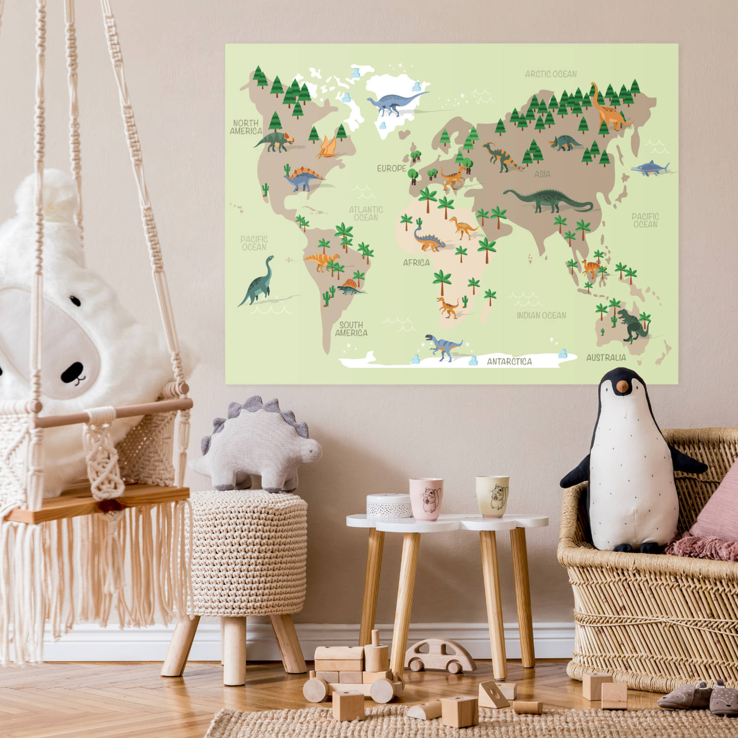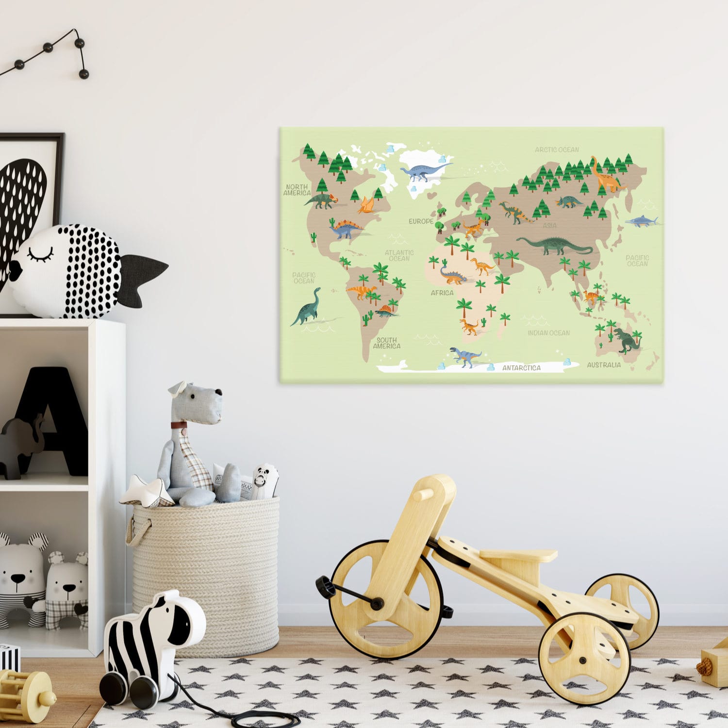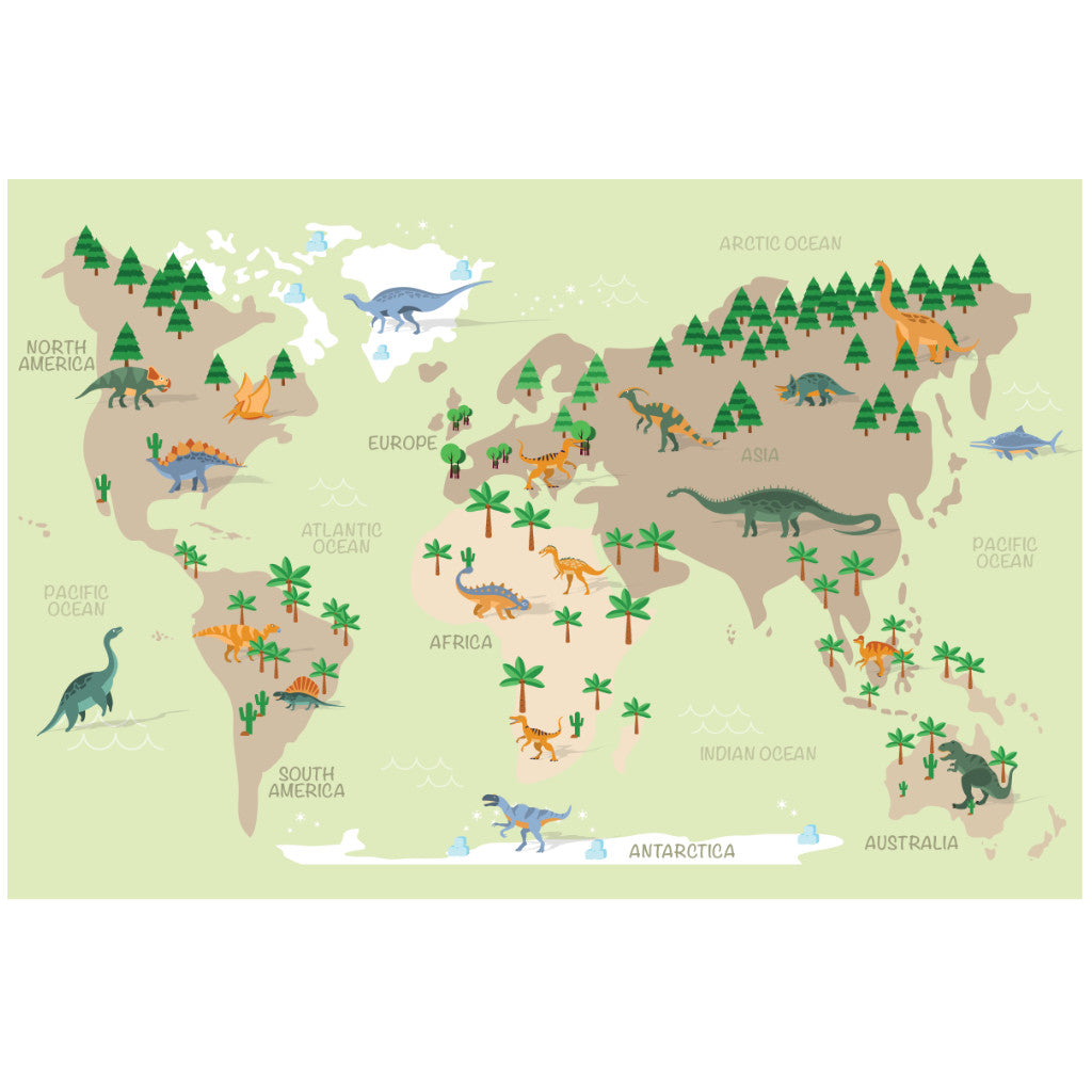 Weltkarte Kinder Grün - Dinosaurier, Englisch